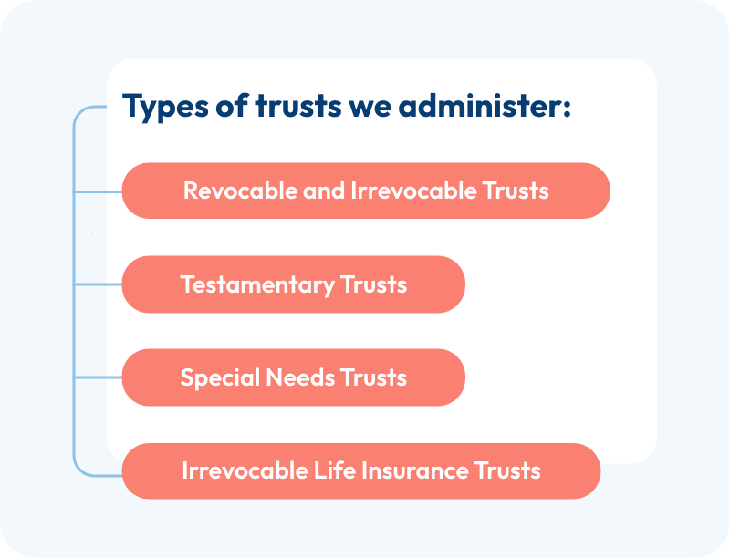 We handle all aspects of trust management with care and precision, from settling final affairs to ongoing oversight for beneficiaries.